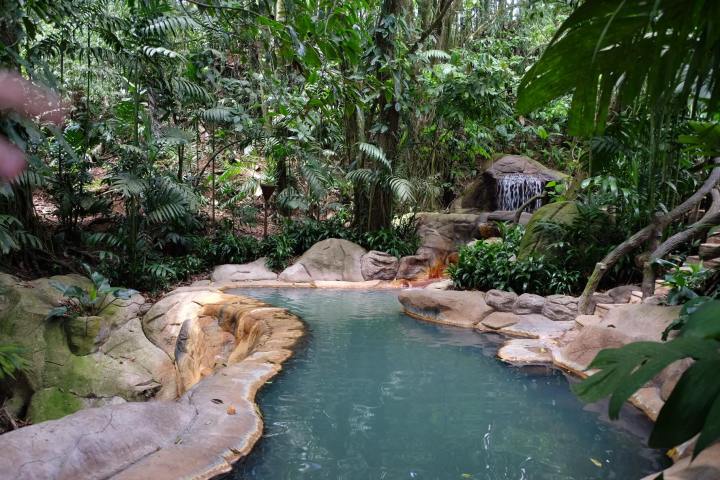 Unseren ersten Tag verbrachten wir in einigen der insgesamt 28 heißen, natürlichen Quellen der Unterkunft. Die Temperatur liegt zwischen 30 und 40 Grad. In einer solchen natürlichen Quelle zu entspannen, mit Blick auf den aktiven Vulkan Arenal, machte den Aufenthalt hier perfekt.