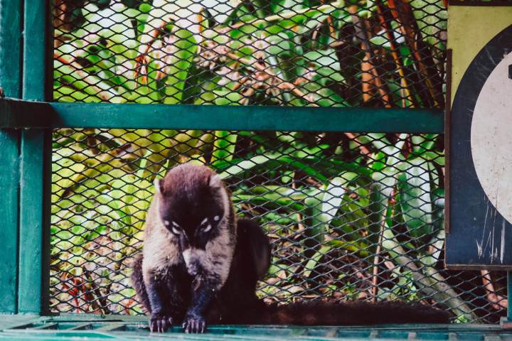 Nach einer 20-minütigen Fahrt zum Selvatura Park begrüßte uns bereits am Eingang ein Nasenbär. Der Parkplatz war noch ziemlich leer, als wir gegen 7:30 Uhr angekommen sind.